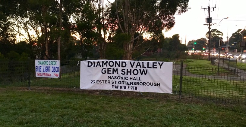 Today is a big day in the gem collecting fraternity as the annual Diamond Valley Gem Show kicked off in Greensborough this morning. Few people in the area know much about the Show, except that every year in recent memory eye-catching banners advertising the Show appear on major intersections throughout the area.