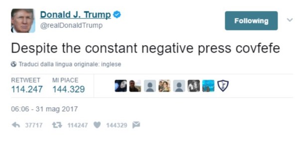 Trump drew significant attention earlier this week after bizarrely tweeting, just after midnight, “Despite the constant negative press covfefe” sending the internet into meltdown as nerds across the globe scrambled over themselves to publish new memes using the word “covfefe” in as many weird and wonderful ways as possible.