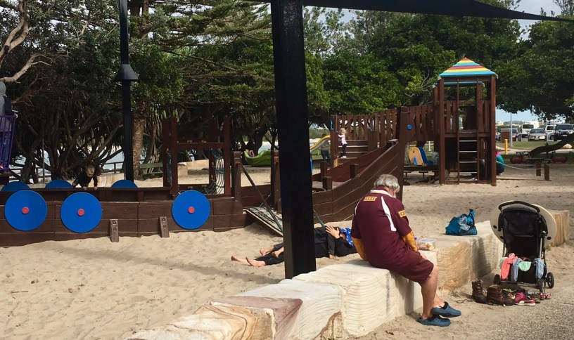 QUEENSLAND: Considering that it’s Origin Day in the Sunshine State, it’s fair to say that old mate Maroons fan would much rather be sitting in a licensed venue chewing schooners than sitting in a playground supervising his grandkids. Dressed head-to-toe in maroon clothing, including a fetching pair of maroon cargo shorts, and reading a Rugby League magazine, it’s fair to say he’s not interesting in what little Jimmy is doing on the swings.
