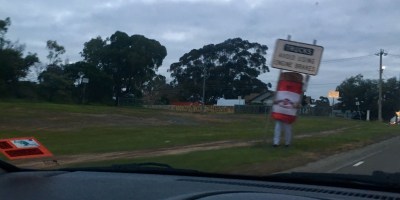 Local cyclist angered by new positioning of giant coffee cup man