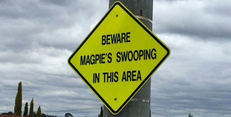 Residents on Webster Crescent are in a constant state of confusion over a grammatical error on a sign presumably intended to warn passers by of swooping magpies. The Watsonia Bugle was recently contacted by one such resident who remains unclear about what a magpie’s “swooping” actually is.