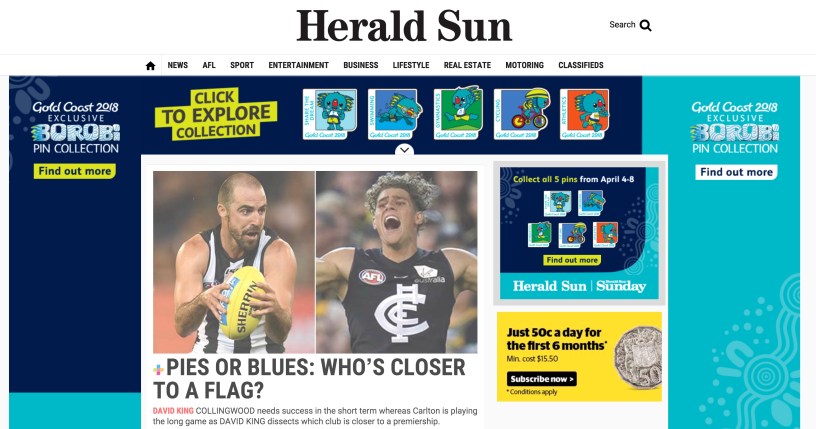In a seemingly desperate attempt to drum up some interest in tonight’s game between Collingwood and Carlton, a leading Melbourne newspaper has asked what some readers are describing as an insensitive and ridiculous question. Asking which of the two teams is closer to winning a premiership seems to be a classic case of removing the attention away from what is sure to be the first of many uninspiring Friday night match ups this AFL season.