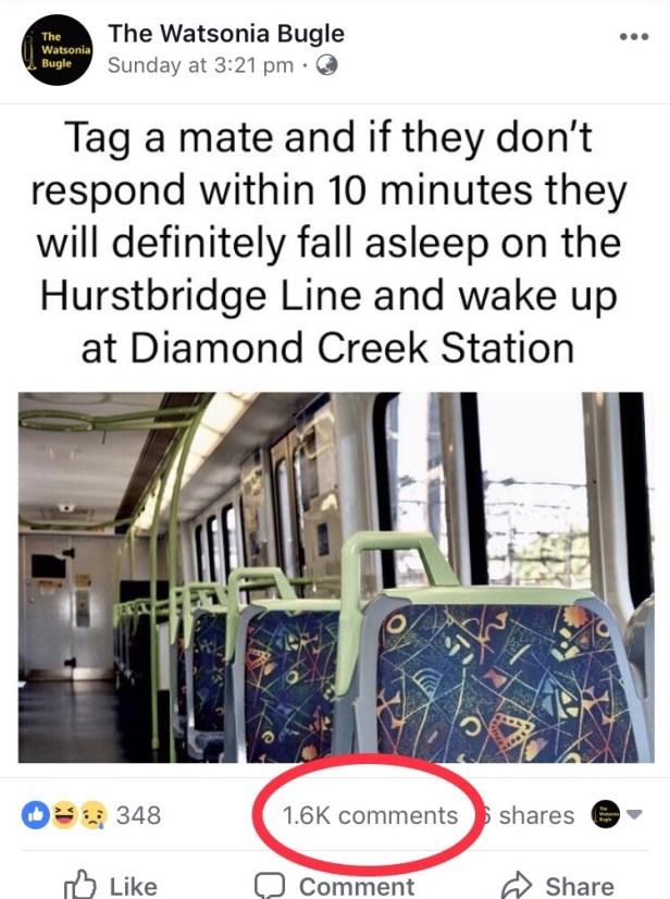 The company responsible for providing trains for Melbourne’s public transport system is reportedly considering adding a sleeping cabin to all Hurstbridge Line trains following the overwhelming response to a meme posted by The Watsonia Bugle over the weekend. At last count the meme had received over 1,600 comments, mostly from people wishing harm upon their friends by cursing them to fall asleep on the train and wake up in Diamond Creek. Here is the meme: