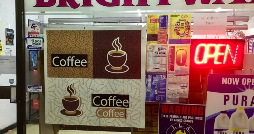 However, one caffeine addict seen walking out of the milk bar with a hot cup of coffee told The Watsonia Bugle, “I actually found the sign quite helpful. It left me in no doubt that coffee was for sale. I mean, it says ‘coffee’ three times, there’s two actual cups of coffee, and there’s a heap of beans in the background. What more could you want?”