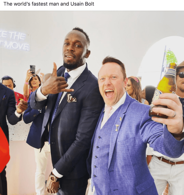 A local selfie-hunter got a little more than he bargained for at Tuesday’s Melbourne Cup, after his insatiable desire to be photographed with celebrities resulted in him being splashed all over a major tabloid news service. Diamond Valley identity Timothy Mooney was enjoying a colourful day in Flemington’s Birdcage during the race that stops the nation, enthusiastically collecting selfies with a variety of celebrities and occasionally posting them on social media alongside hilariously original captions like this one…