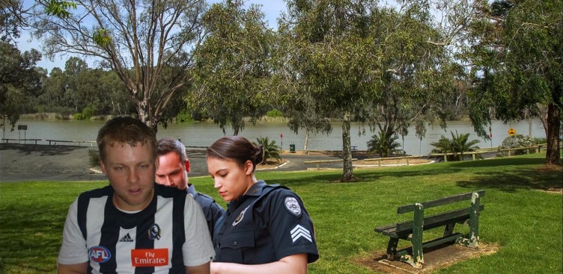 An overly optimistic Collingwood supporter has been captured by authorities after attempting to cross the Victoria–NSW border this morning so he could get to Sydney for tonight’s game against the Hawks. Brendon Grimsdale, from regional Victoria, reportedly made the bold attempt earlier this morning, but was fished out of the Murray River around 8.00am after failing to make the full swim across to NSW.