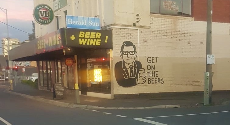 A local bottle shop has been encouraged to commission a timely piece of street art that promotes increased beer consumption during lockdown 2.0. The push follows the recent emergence of a Dan Andrews caricature on the external wall of a Moonee Ponds bottle shop, serving the dual purpose of providing light entertainment and spruiking the soothing embrace of alcohol during Lockdown 2.0.