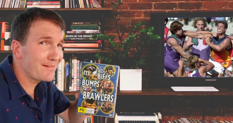 A disenchanted footy fan has dusted off his well-worn copy of Biffs, Bumps and Brawlers to deliver a timely reminder of the good old days. Frustrated with the state of the modern game, Grant Nelson watched the entire DVD this afternoon, while enjoying some alone time in his man cave.