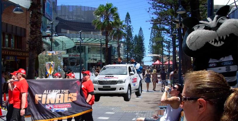 An AFL Grand Final Parade held along Cavill Avenue in Surfers Paradise earlier today was reportedly met with indifference by locals, with many reportedly unaccustomed to seeing professional athletes on the popular boulevard at that time of the day. In fact, some visitors to the beachside main street were upset by the intrusion, with more than one passerby bluntly suggesting the players should piss off back to Victoriaonavirus.