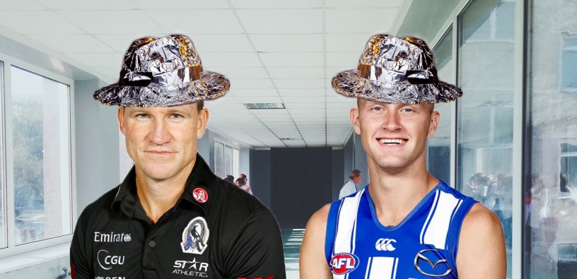 A shared love of COVID conspiracies has reportedly reunited former Collingwood coach Nathan Buckley with current Kangaroos player Jaidyn Stephenson. The pair had reportedly been estranged ever since Stephenson’s messy exit from Collingwood at the end of the last season, but now they have some common ground on which to bond over.