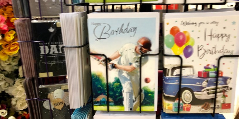 A greeting card cricketer has been spotted playing a very unusual shot at a local bargain emporium, sparking multiple questions about what he’s actually doing. Local cricketer Fraser Price has told The Watsonia Bugle that he honestly cannot work out what kind of shot the fictional batsman is playing and, in the process, has openly questioned the artist responsible for the image.