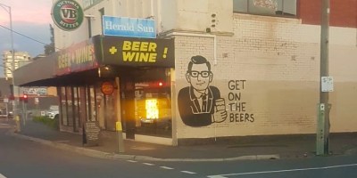 Local bottleo encouraged to commission timely street art that promotes increased beer consumption