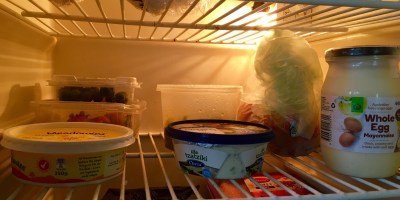 Bloke on holidays has odd breakfast while trying to run the holiday house fridge down