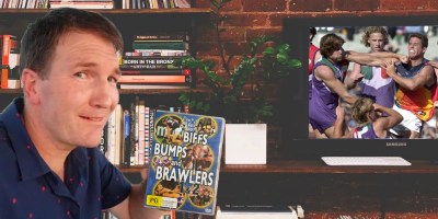 Disenchanted footy fan dusts off copy of “Biffs, Bumps and Brawlers” to remind himself of the good old days